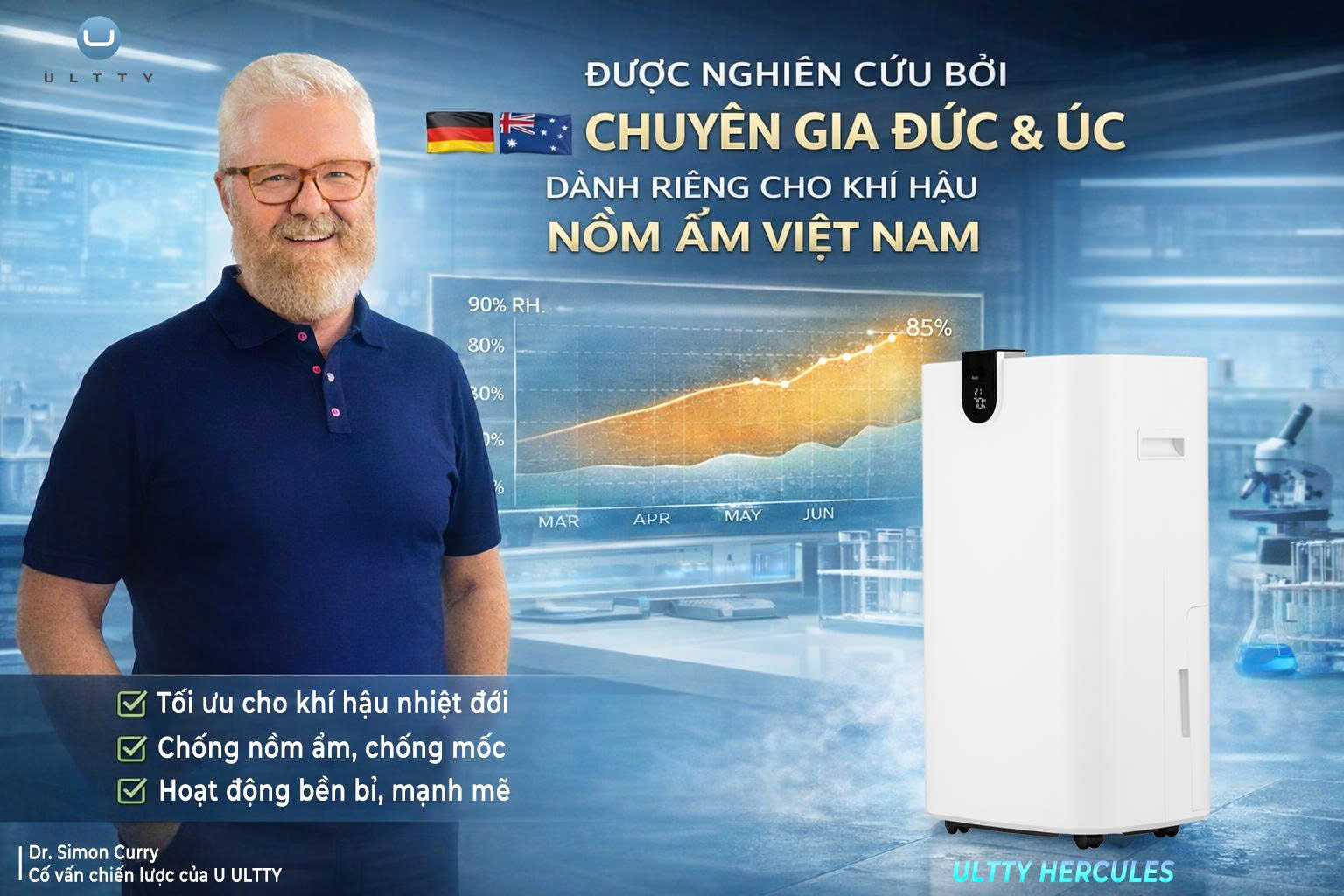 Trước những đặc thù khí hậu và thói quen sinh hoạt tại Việt Nam, không phải mọi thiết bị hút ẩm đều phù hợp. Nhận ra điều đó, đội ngũ ULTTY đã phát triển sản phẩm ULTTY Hercules là dòng máy hiếm hoi được các kỹ sư và chuyên gia hàng đầu từ Đức và Úc trực tiếp nghiên cứu dựa trên dữ liệu khí hậu thực tế tại Việt Nam.