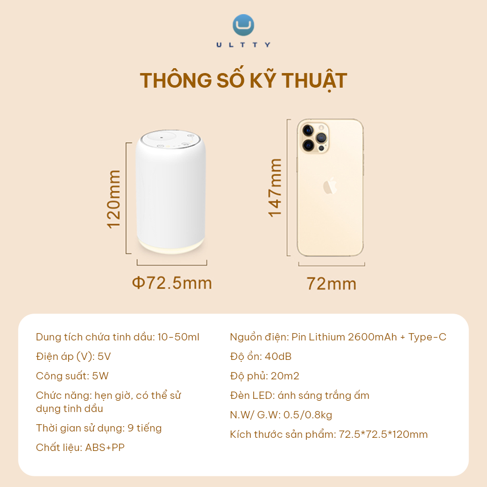 - Tương thích với 90% tinh dầu nguyên chất (quế, cam ngọt, oải hương...), ULTTY AROMA mang đến trải nghiệm hương thơm đa tầng, bao phủ không gian bằng sự thư giãn và khơi dậy sự tĩnh tại trong từng không gian sống.