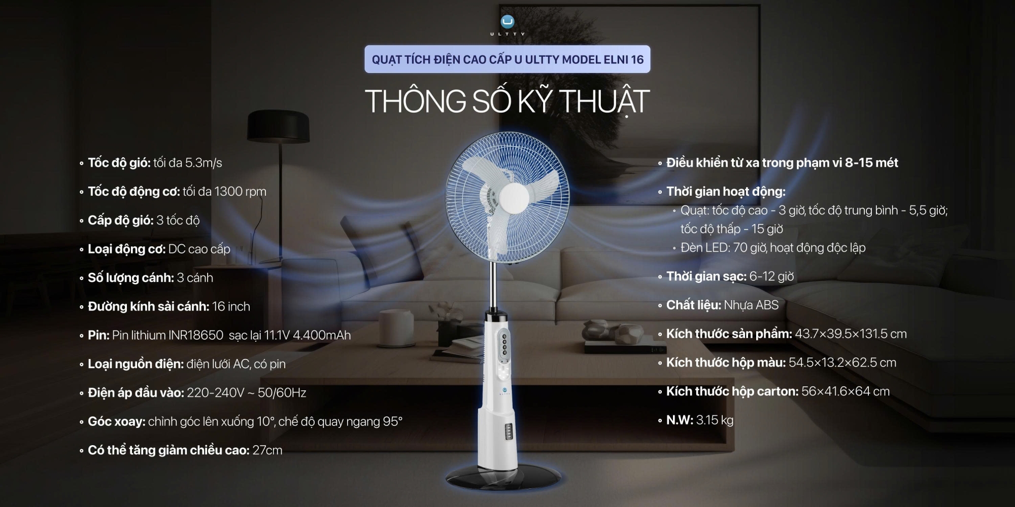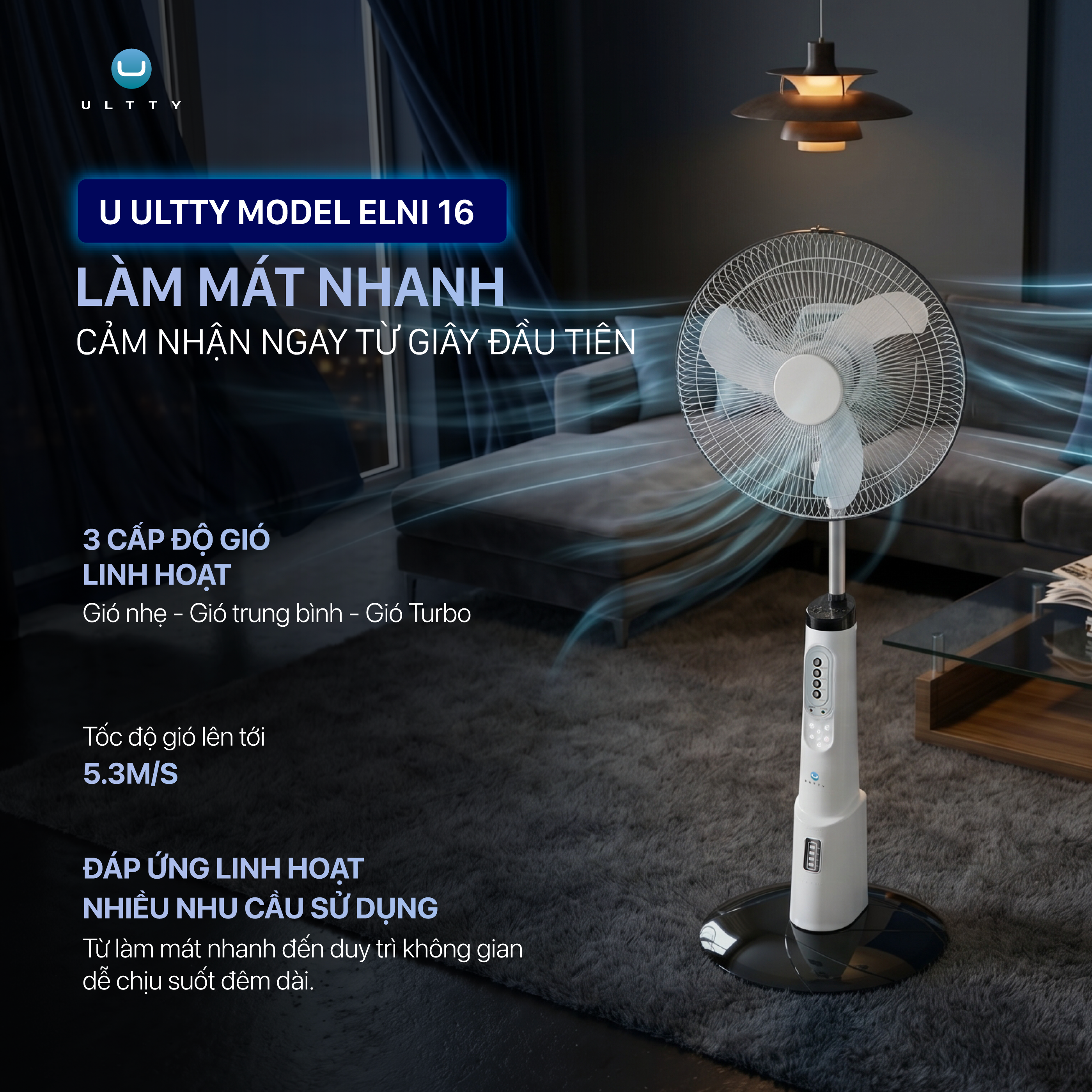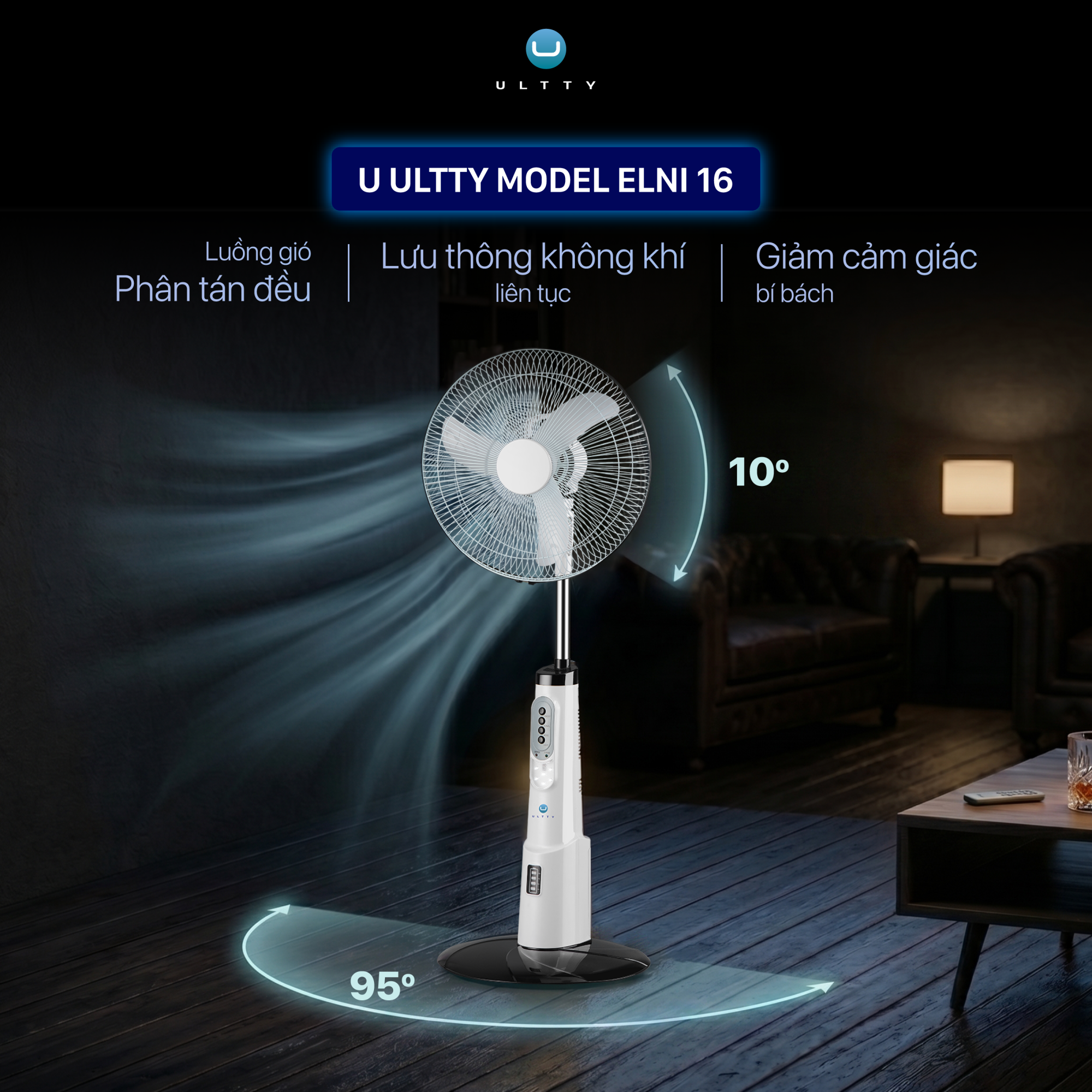 Với ULTTY ELNI 16, không gian của bạn sẽ được chăm sóc toàn diện nhờ hệ thống đảo gió thông minh: