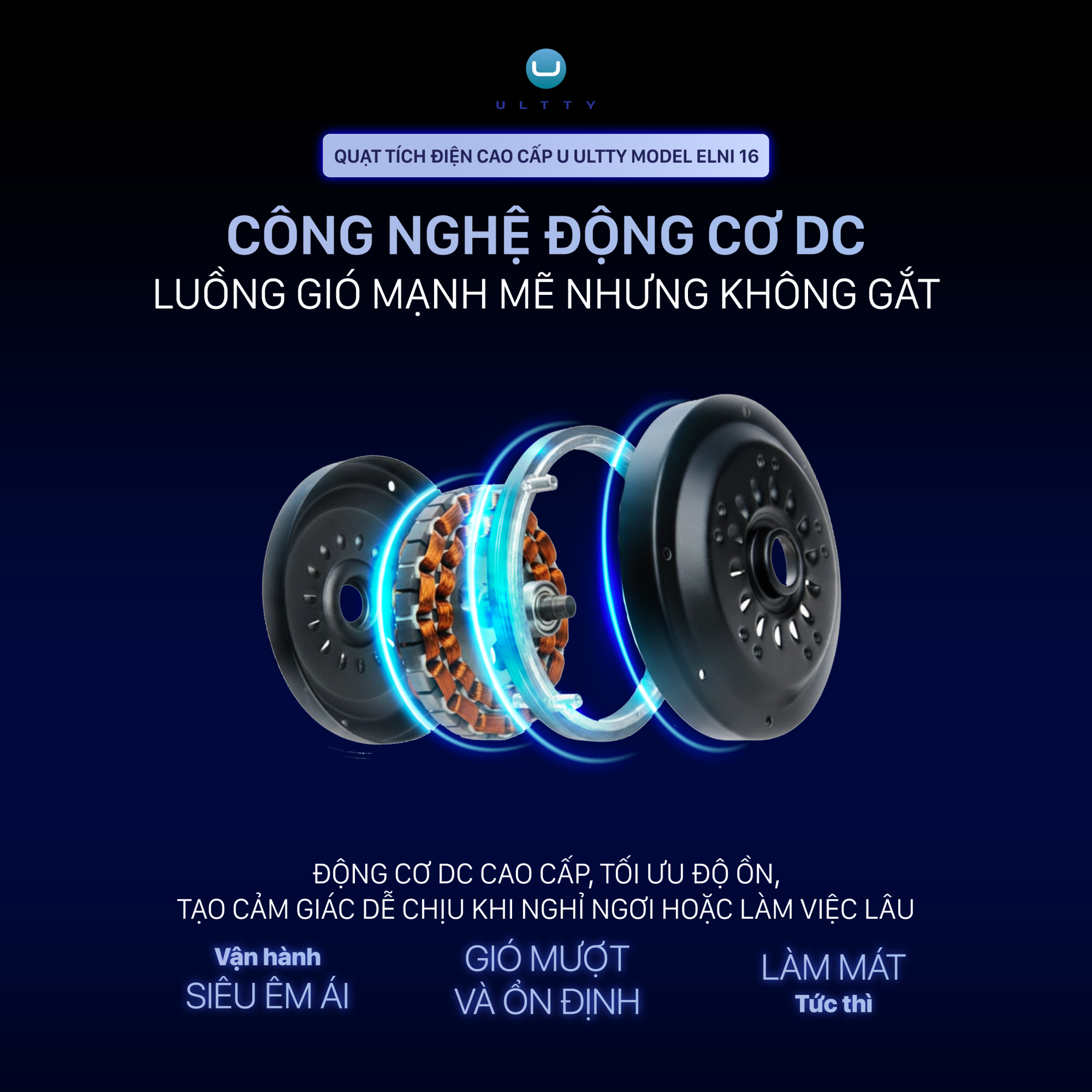 Khác biệt hoàn toàn với các dòng quạt giá rẻ trên thị trường, ULTTY ELNI 16 sở hữu động cơ DC hiện đại:
