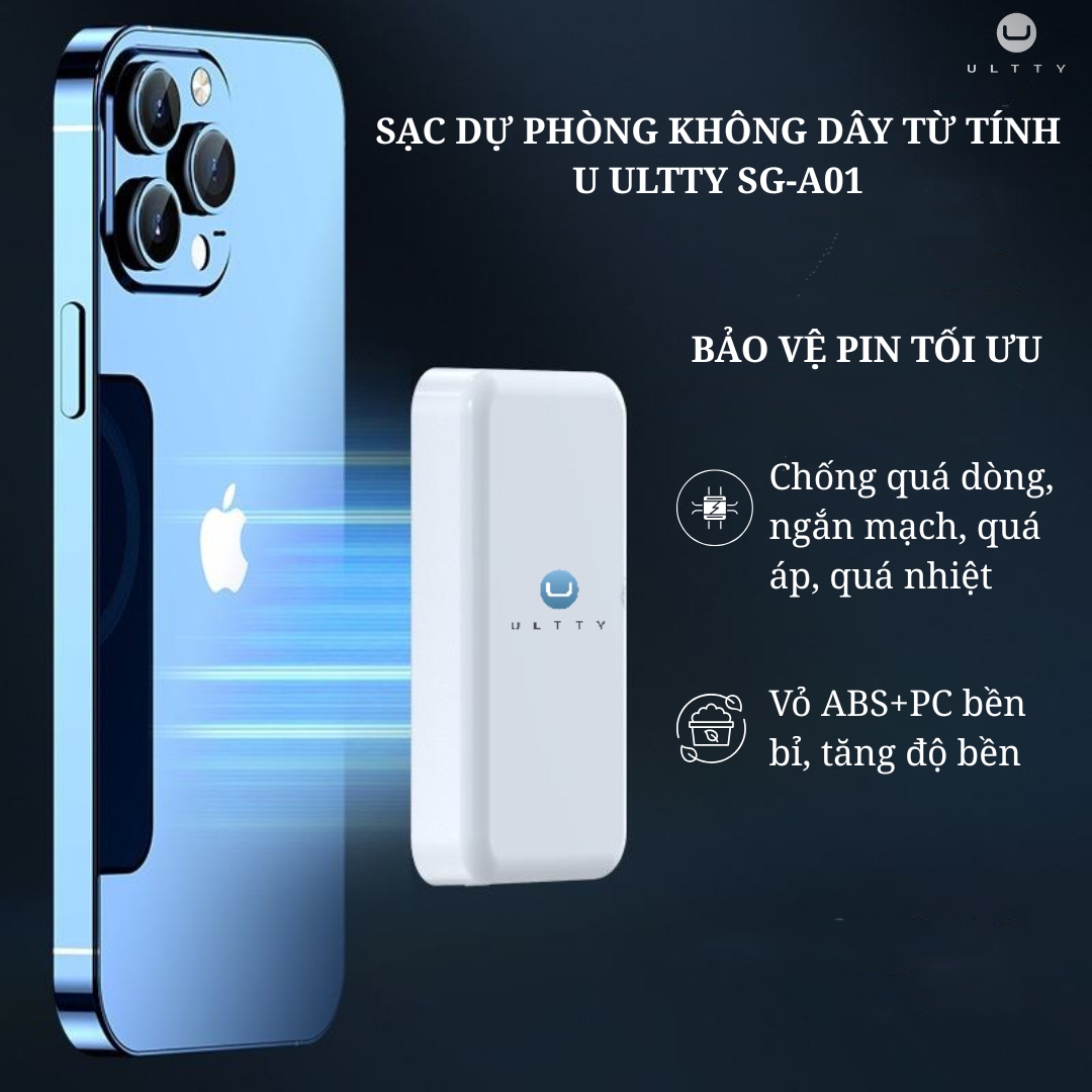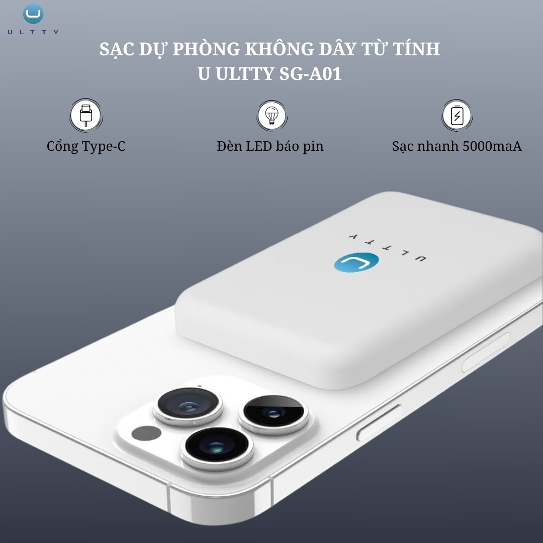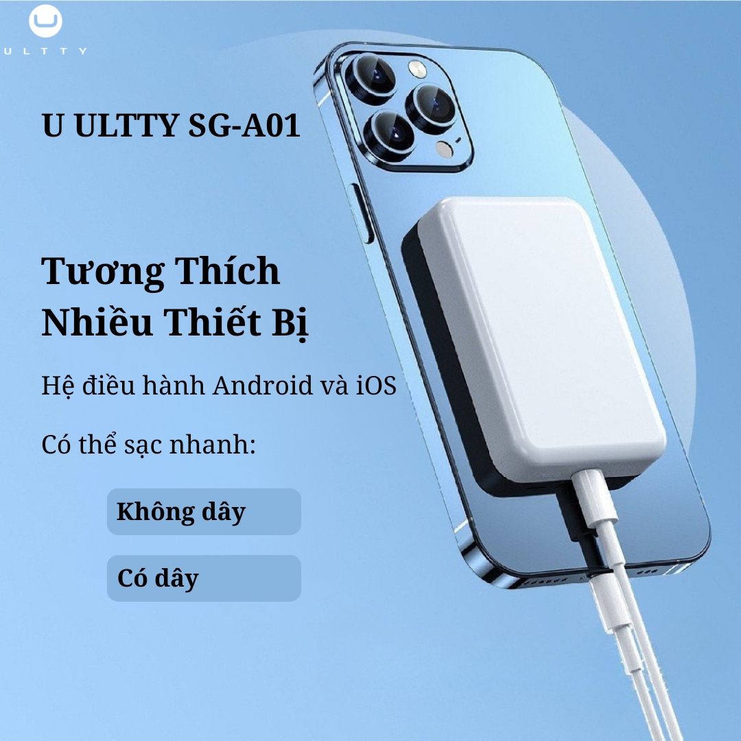 Sạc dự phòng không dây từ tính U ULTTY SG-A01 là giải pháp năng lượng di động hoàn hảo, được thiết kế siêu mỏng và tiện lợi, tương thích rộng rãi với hầu hết các thiết bị hỗ trợ sạc không dây và có dây kết hợp với cổng sạc Type-C