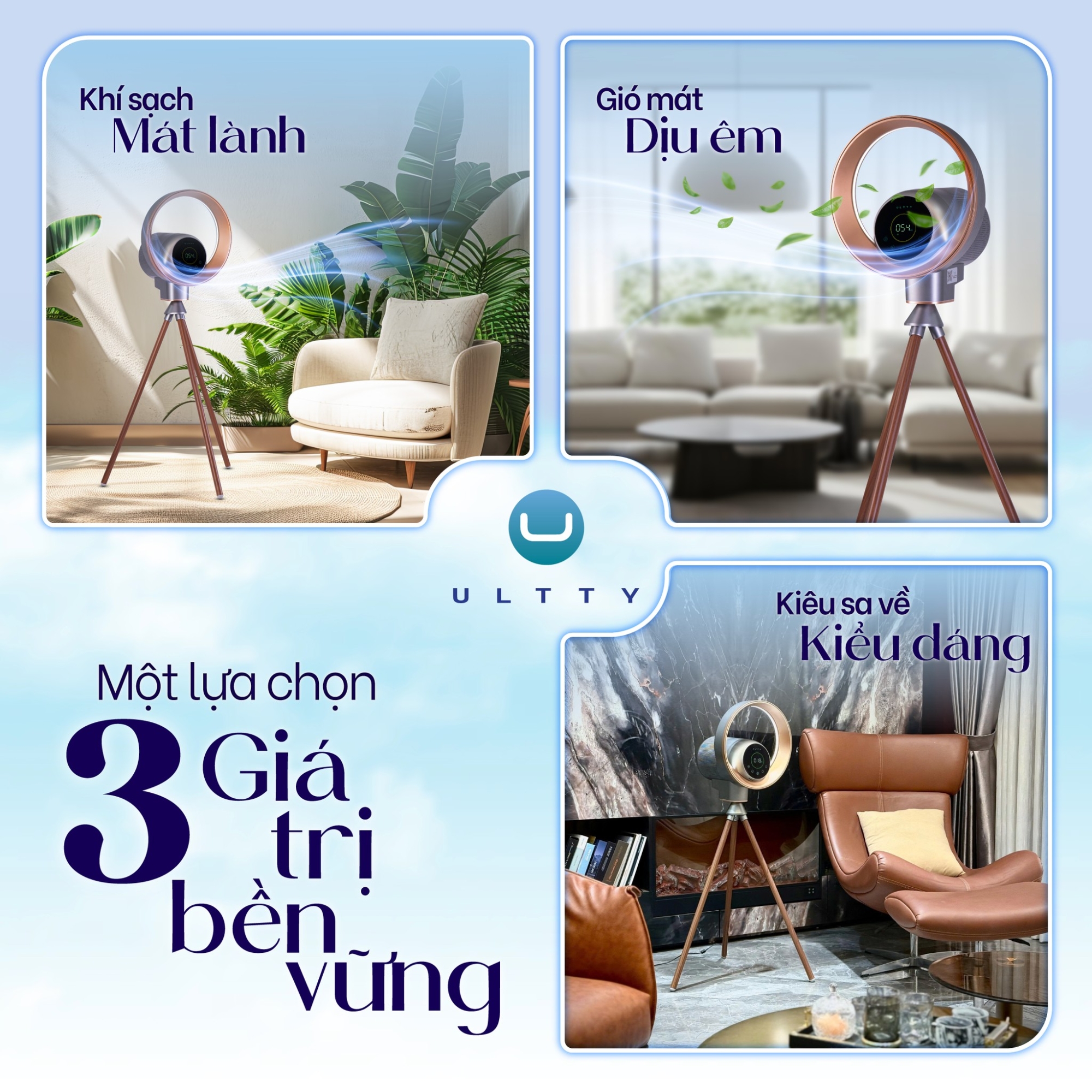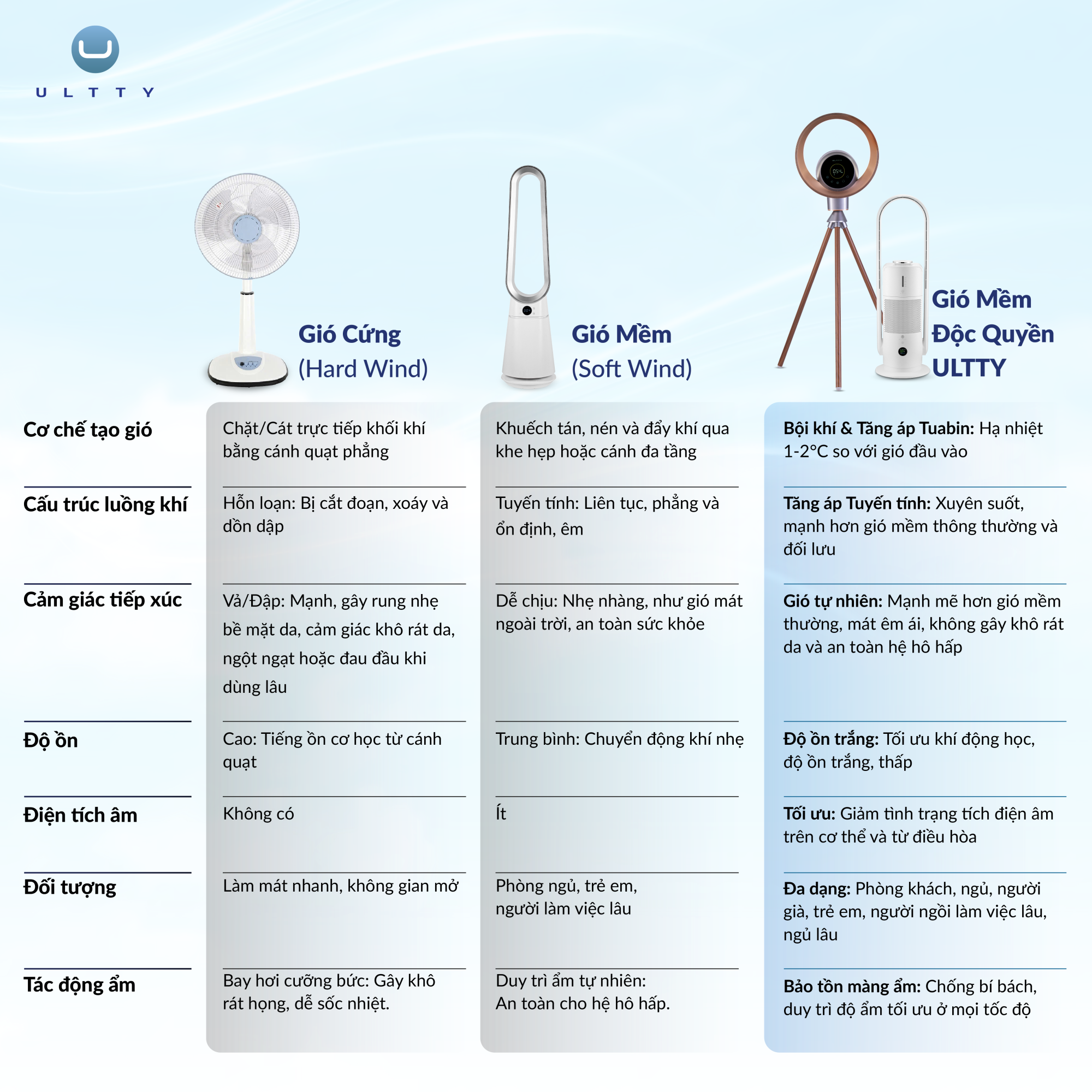 Tại ULTTY - thương hiệu sở hữu nhà máy sản xuất quạt không cánh thuộc Top 3 thế giới, chúng tôi tin rằng đỉnh cao của công nghệ không phải là tạo ra luồng gió mạnh nhất, mà là tạo ra luồng gió giống tự nhiên nhất. Và "gió khỏe" phải là làn gió mát dễ chịu và không gây hại đến mao mạch.